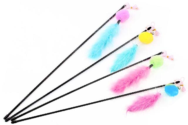 Καλάμι γάτας με κορδόνι και γούνινο μπαλάκι με κουδουνάκι