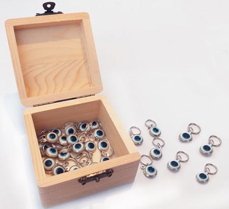 Ξύλινη κασετίνα με 25 τεμάχια ματάκια για σκύλους