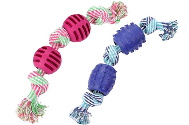Παιχνίδι σκύλου Double TPR οδοντικές μπάλες με σχοινί 26cm