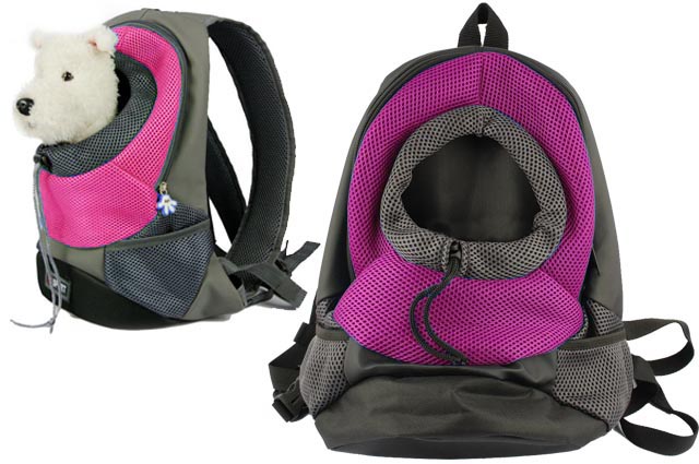 Σακίδιο πλάτης για μεταφορά του σκύλου ή της γάτας ύψους 40 cm, μήκους 35 cm και πλάτους 17 cm.