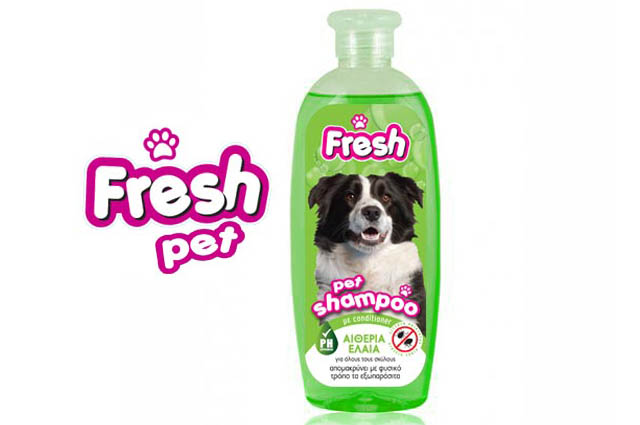 Αντιπαρασιτικό σαμπουάν Fresh Pet με Γερανιόλη, Αιθέρια Έλαια, Ευκάλυπτο, Μέντα, Σιτρονέλα για να μένουν μακρυά οι ανεπιθύμητοι επισκέπτες.